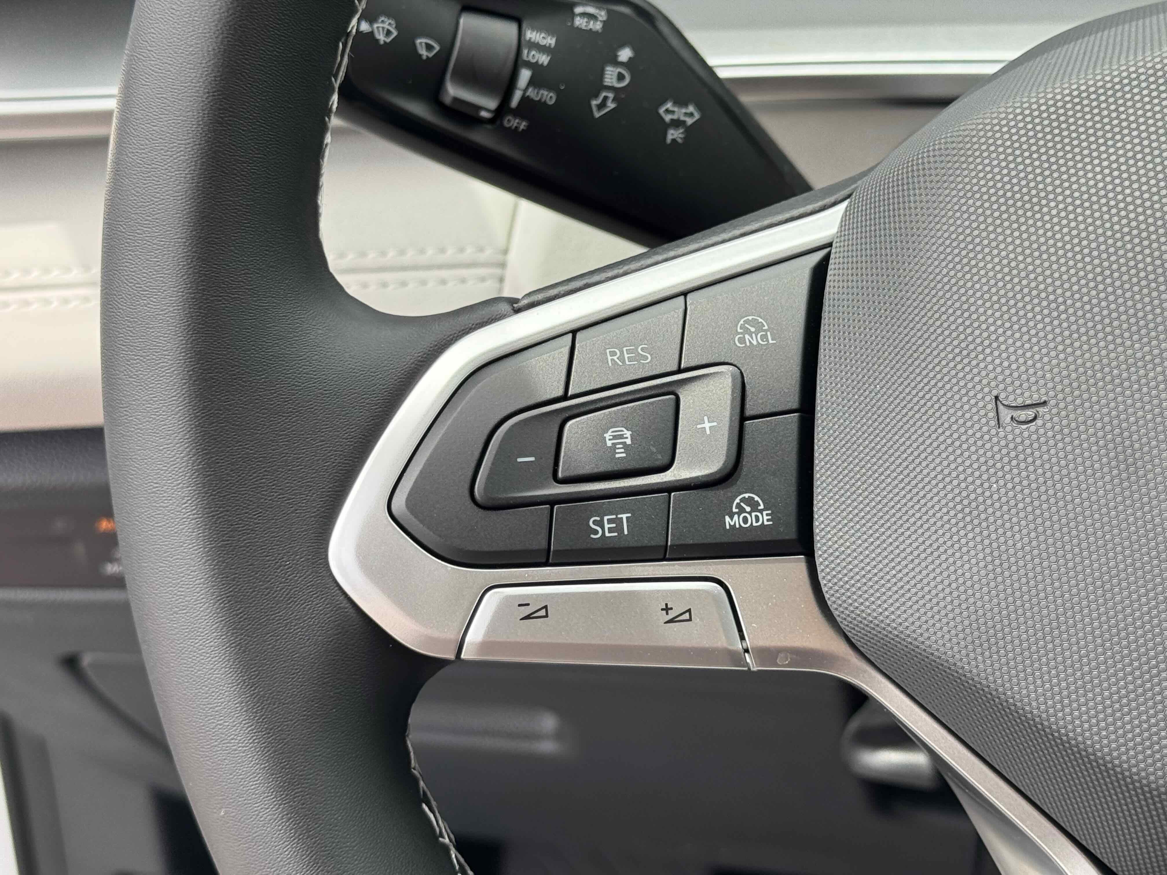 - Radio: MIB4 Composition Media Touchscreen AM/FM -inc: WMA/MP3/FLAC player w/USB, 12.9" touchscreen multi-function center display w/backlit sliders, voice control, 6 speakers + center speaker (7 speakers total) sound system, capability for in-vehicle 4G LTE enabled Wi-Fi (cellular data plan required; includes limited trial), capability for VW Car-Net services (capabilities for services vary; requires enrollment or subscription), Bluetooth® connectivity (for compatible devices), SiriusXM w/360L (w/3-month free trial subscription; 360L services require acceptance of Car-Net terms), App-Connect smartphone integration (w/Apple CarPlay, Android Auto and MirrorLink) via USB, wireless App-Connect smartphone integration (for compatible devices) w/multi-phone pairing capability, 45W fast charging (for compatible mobile phones and accessories) via USB in both rows and Qi wireless inductive charger, cooled, up to 15W (for compatible mobile phones and accessories)
