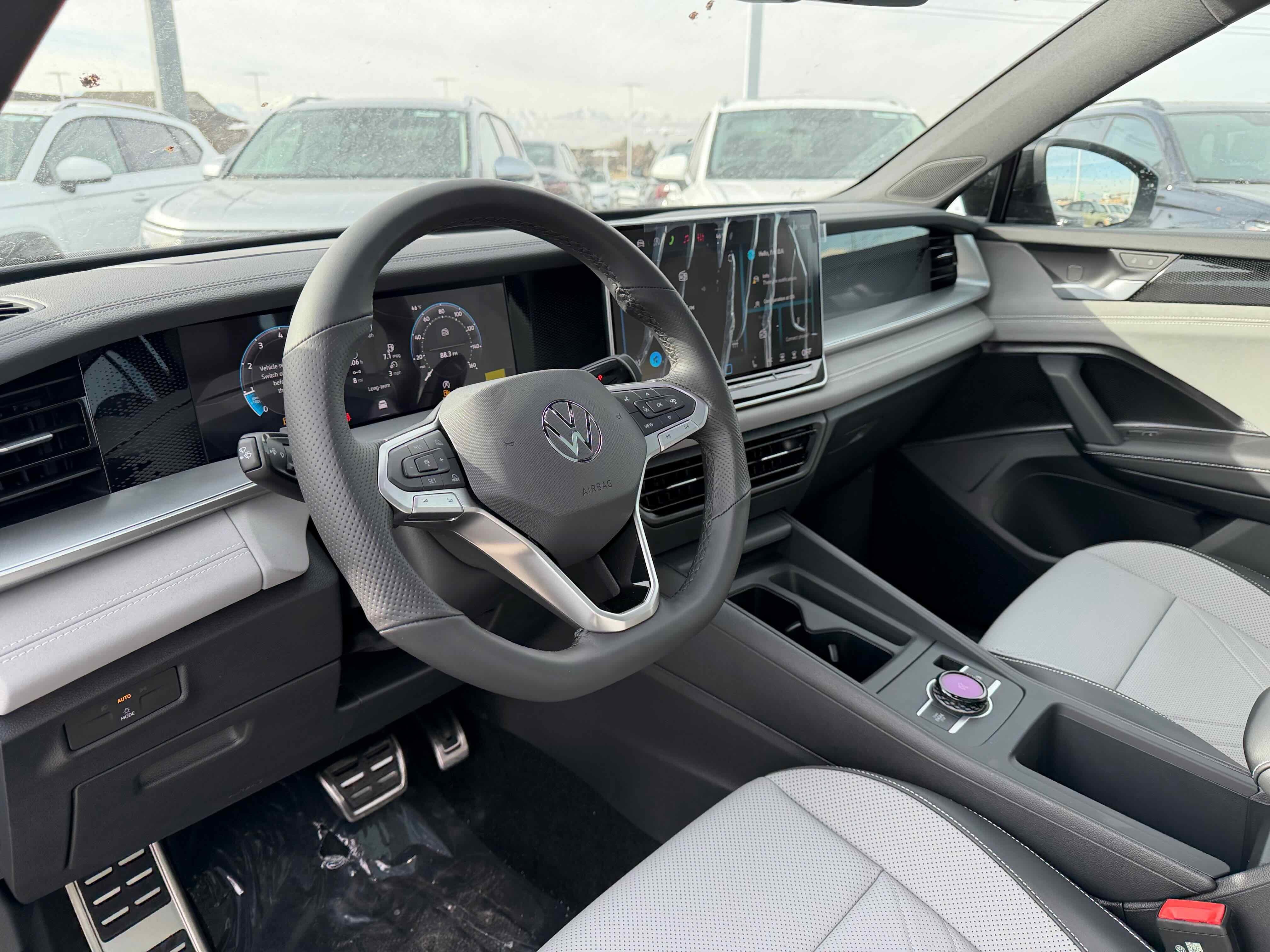 - MIB4 Composition Media Touchscreen w/AM/FM Radio -inc: WMA/MP3/FLAC player w/USB, 12.9" touchscreen multi-function center display w/backlit sliders, voice control, 6 speakers + center speaker (7 speakers total) sound system, capability for in-vehicle 4G LTE enabled Wi-Fi (cellular data plan required; includes limited trial), capability for connected vehicle services (capabilities for services vary; requires enrollment or subscription), Bluetooth® connectivity (for compatible devices), SiriusXM w/360L (w/3-month free trial subscription; 360L services require acceptance of Car-Net terms), App-Connect smartphone integration (w/Apple CarPlay, Android Auto and MirrorLink) via USB, wireless App-Connect smartphone integration (for compatible devices) w/multi-phone pairing capability, 45W fast charging (for compatible mobile phones and accessories) via USB in both rows and Qi wireless inductive charger, cooled, up to 15W (for compatible mobile phones and accessories) All connected vehicle services are subject to terms and limitations. Some services require a paid subscription. See dealer or vw.com/connected for important details.