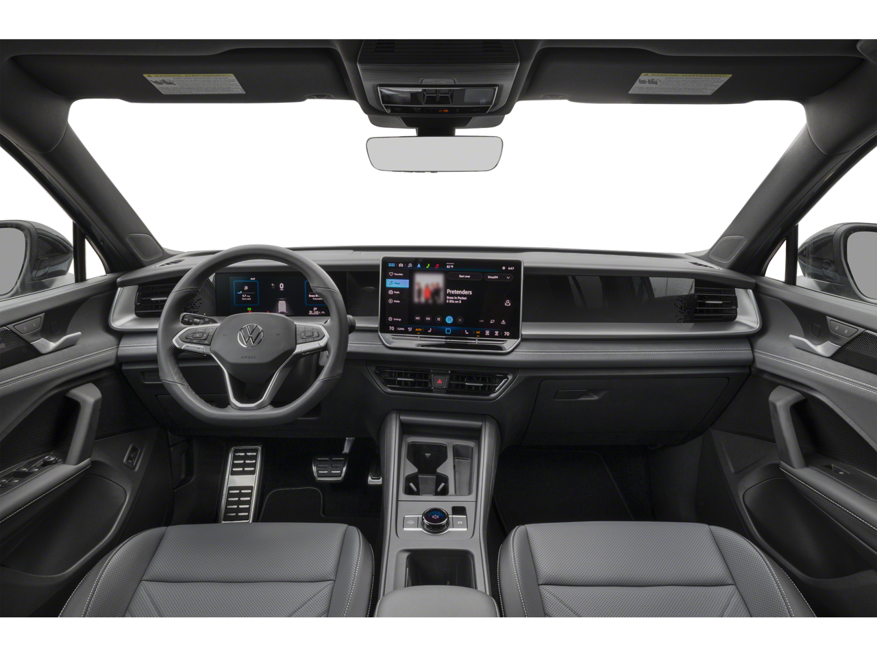 - MIB4 Composition Media Touchscreen w/AM/FM Radio -inc: WMA/MP3/FLAC player w/USB, 12.9" touchscreen multi-function center display w/backlit sliders, voice control, 6 speakers + center speaker (7 speakers total) sound system, capability for in-vehicle 4G LTE enabled Wi-Fi (cellular data plan required; includes limited trial), capability for connected vehicle services (capabilities for services vary; requires enrollment or subscription), Bluetooth® connectivity (for compatible devices), SiriusXM w/360L (w/3-month free trial subscription; 360L services require acceptance of Car-Net terms), App-Connect smartphone integration (w/Apple CarPlay, Android Auto and MirrorLink) via USB, wireless App-Connect smartphone integration (for compatible devices) w/multi-phone pairing capability, 45W fast charging (for compatible mobile phones and accessories) via USB in both rows and Qi wireless inductive charger, cooled, up to 15W (for compatible mobile phones and accessories) All connected vehicle services are subject to terms and limitations. Some services require a paid subscription. See dealer or vw.com/connected for important details.