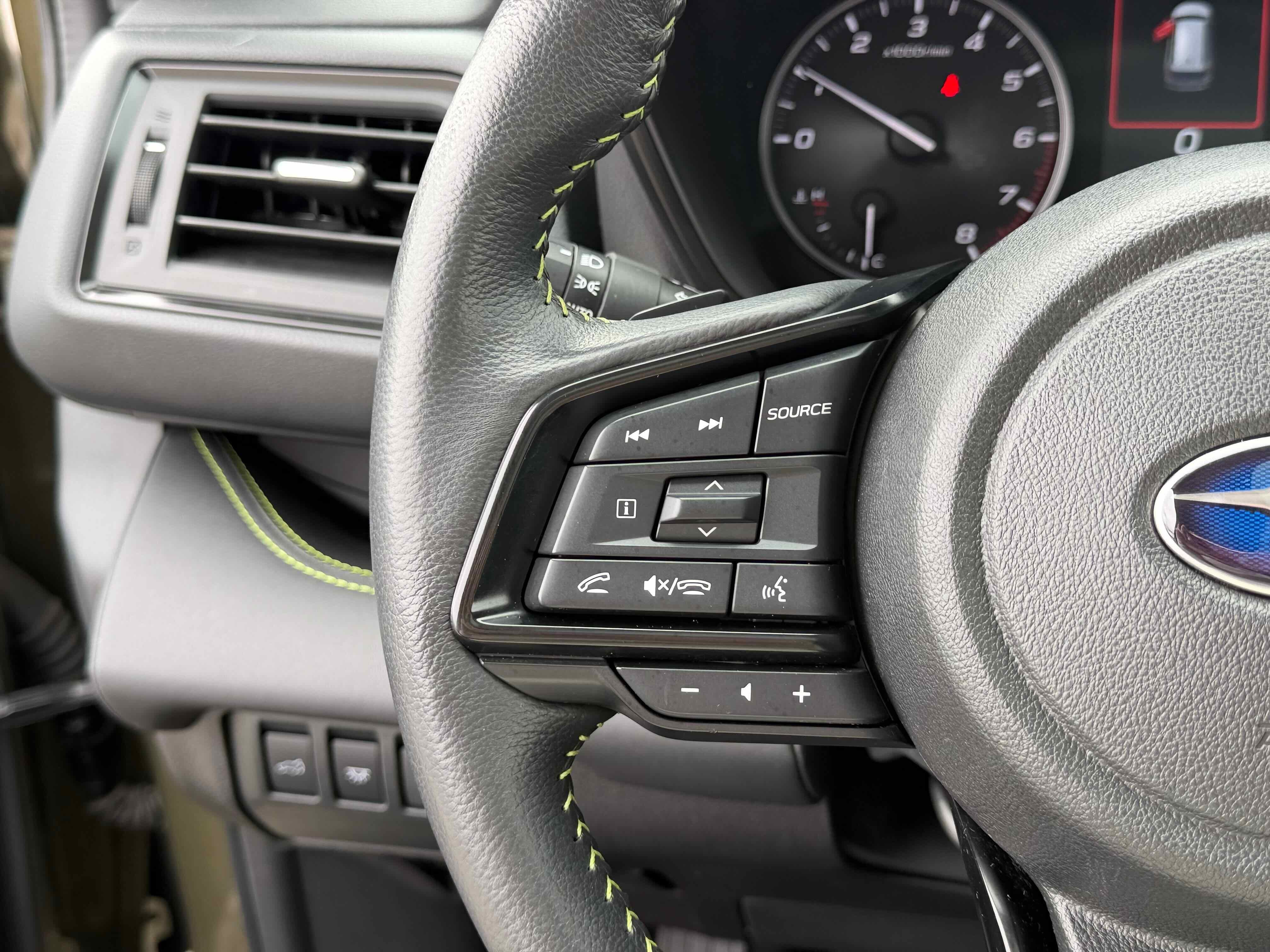 - Radio: Subaru STARLINK 11.6" Multimedia Nav System -inc: AM/FM stereo HD Radio, multi-touch gesture high resolution display screen, voice activated controls for radio and navigation, Bluetooth® audio streaming and hands-free phone connectivity w/SMS text messaging connectivity (refer to subaru.com for cell phone compatibility), Near Field Communication (NFC), TomTom navigation software w/What3Words, iPod control capability, SiriusXM All Access radio (4 months free trial/subscription required after), SiriusXM Traffic (3 years free trial/subscription required after), SiriusXM Travel Link (3 years free trial/subscription required after), smartphone integration for Android Auto and Apple CarPlay w/full screen view and wireless connection and STARLINK cloud applications, USB audio system update, TomTom navigation system update w/USB/Map Over The Air (MOTA) (3 years free map updates), steering wheel controls for audio and Bluetooth®, harman/kardon quantum logic surround sound speaker system w/14 speakers, subwoofer and harman/kardon 792 watt equivalent maximum output amplifier, 3.5mm illuminated auxiliary input jack, and illuminated USB A and C input/charge ports